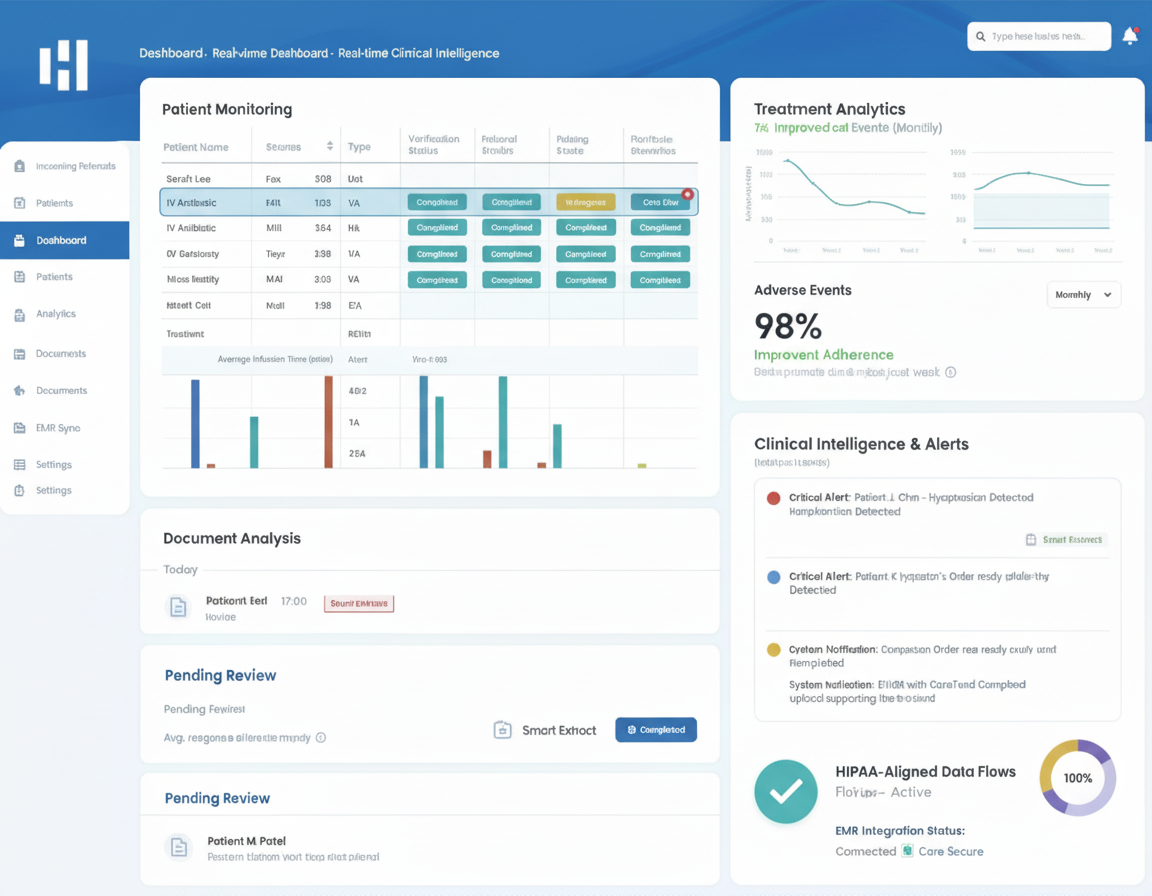 Develop HIPAA-compliant clinical platforms, infusion therapy monitoring, and mental health assistants with real-time intelligence.